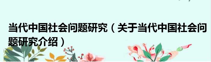 當代中國社會問題研究(關于當代中國社會問題研究介紹)