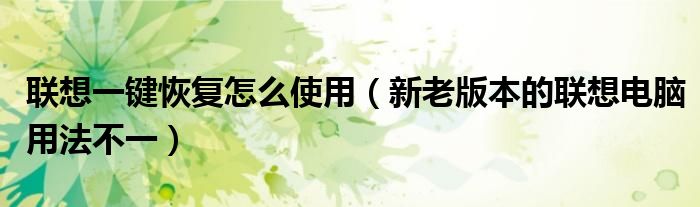 聯想一鍵恢復怎么使用(新老版本的聯想電腦用法不一)