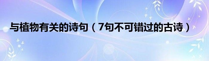 導讀 大家好,小謝來為大家解答以上問題。與植物有關的詩句,7句不可錯過的古詩很多人還不知道,現在讓我們一起來看看吧!