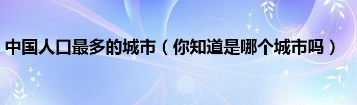 導讀 大家好,小謝來為大家解答以上問題。中國人口最多的城市,你知道是哪個城市嗎很多人還不知道,現在讓我們一起來看看吧!