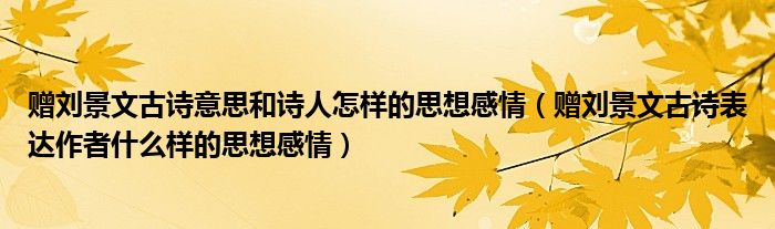 導讀 大家好,精選小編來為大家解答以上的問題。贈劉景文古詩意思和詩人怎樣的思想感情,贈劉景文古詩表達作者什么樣的思想感情很多人還不知道,