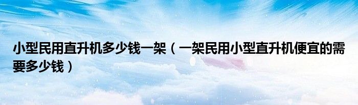 導讀 大家好,精選小編來為大家解答以上的問題。小型民用直升機多少錢一架,一架民用小型直升機便宜的需要多少錢很多人還不知道,現在讓我們一起