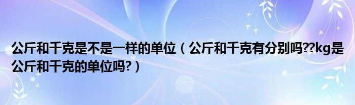 公斤和千克是不是一樣的單位(公斤和千克有分別嗎??kg是公斤和千克的單位嗎?)