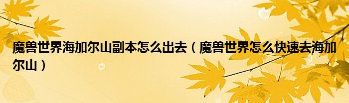 魔獸世界海加爾山副本怎么出去(魔獸世界怎么快速去海加爾山)