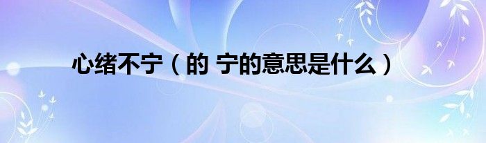 大家好,精選小編來為大家解答以上的問題。心緒不寧,的 寧的意思是什么很多人還不知道,現在讓我們一起來看看吧!