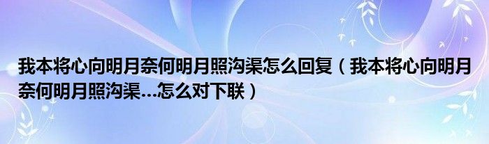 我本將心向明月奈何明月照溝渠怎么回復(我本將心向明月奈何明月照溝渠…怎么對下聯)