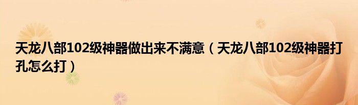 天龍八部102級神器做出來不滿意(天龍八部102級神器打孔怎么打)