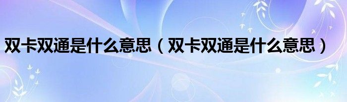 雙卡雙通是什么意思(雙卡雙通是什么意思)
