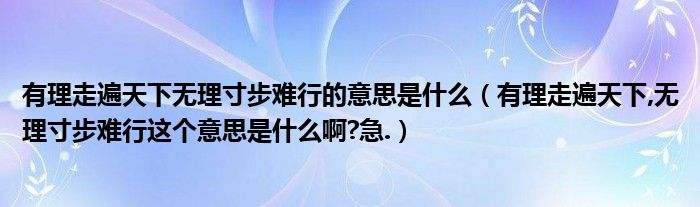 有理走遍天下無理寸步難行的意思是什么(有理走遍天下,無理寸步難行這個意思是什么啊?急.)