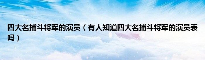 導讀 大家好,精選小編來為大家解答以上的問題。四大名捕斗將軍的演員,有人知道四大名捕斗將軍的演員表嗎很多人還不知道,現在讓我們一起來看看