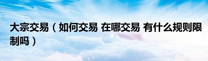 大宗交易(如何交易 在哪交易 有什么規則限制嗎)