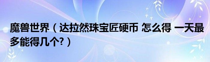 魔獸世界(達拉然珠寶匠硬幣 怎么得 一天最多能得幾個?)