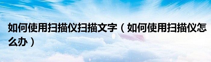 如何使用掃描儀掃描文字(如何使用掃描儀怎么辦)
