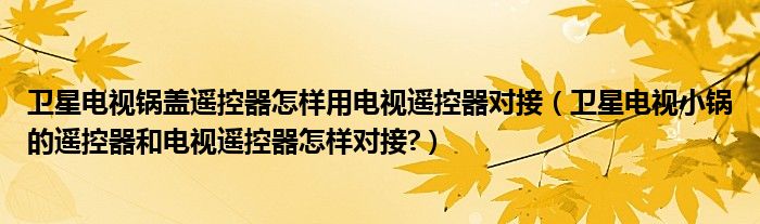 衛星電視鍋蓋遙控器怎樣用電視遙控器對接(衛星電視小鍋的遙控器和電視遙控器怎樣對接?)