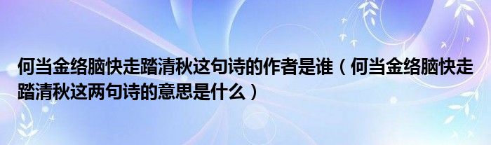 何當金絡腦快走踏清秋這句詩的作者是誰(何當金絡腦快走踏清秋這兩句詩的意思是什么)