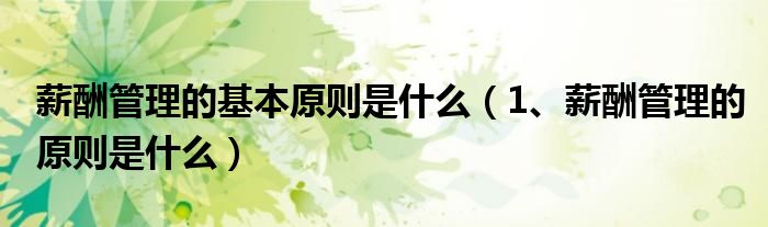 薪酬管理的基本原則是什么(1、薪酬管理的原則是什么)