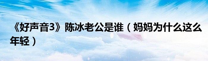 大家好,精選小編來為大家解答以上的問題。《好聲音3》陳冰老公是誰,媽媽為什么這么年輕很多人還不知道,現在讓我們一起來看看吧!