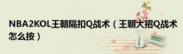 NBA2KOL王朝隔扣Q戰術(王朝大招Q戰術怎么按)