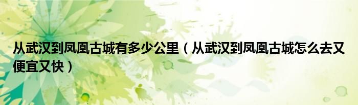 導讀 大家好,精選小編來為大家解答以上的問題。從武漢到鳳凰古城有多少公里,從武漢到鳳凰古城怎么去又便宜又快很多人還不知道,現在讓我們一起