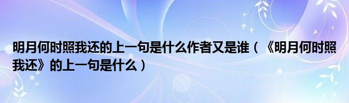 明月何時照我還的上一句是什么作者又是誰(《明月何時照我還》的上一句是什么)