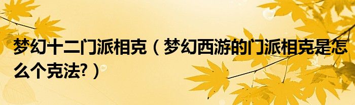 夢幻十二門派相克(夢幻西游的門派相克是怎么個克法?)