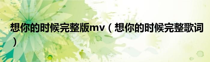 導讀 大家好,精選小編來為大家解答以上的問題。想你的時候完整版mv,想你的時候完整歌詞很多人還不知道,現在讓我們一起來看看吧!1、《想你的