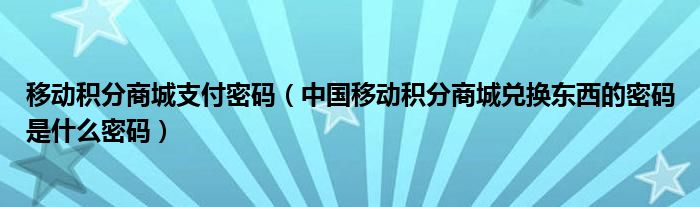 移動積分商城支付密碼(中國移動積分商城兌換東西的密碼是什么密碼)