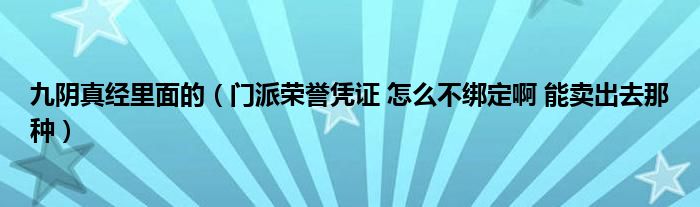 九陰真經里面的(門派榮譽憑證 怎么不綁定啊 能賣出去那種)