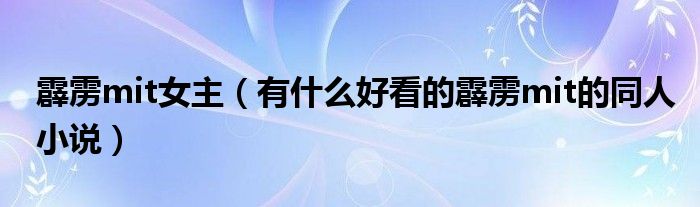 大家好,精選小編來為大家解答以上的問題。霹靂mit女主,有什么好看的霹靂mit的同人小說很多人還不知道,現在讓我們一起來看看吧!