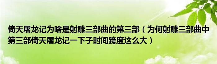 倚天屠龍記為啥是射雕三部曲的第三部(為何射雕三部曲中第三部倚天屠龍記一下子時間跨度這么大)