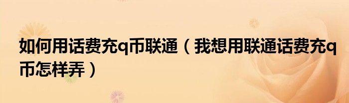 如何用話費充q幣聯通(我想用聯通話費充q幣怎樣弄)