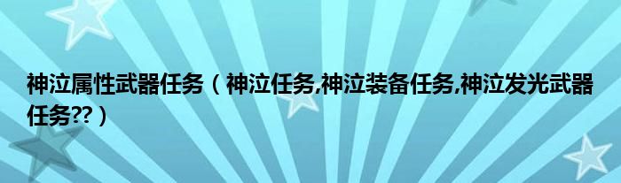 神泣屬性武器任務(神泣任務,神泣裝備任務,神泣發光武器任務??)