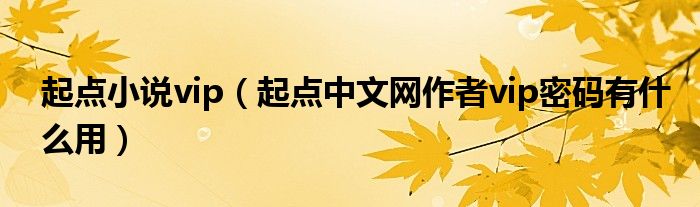 起點小說vip(起點中文網作者vip密碼有什么用)