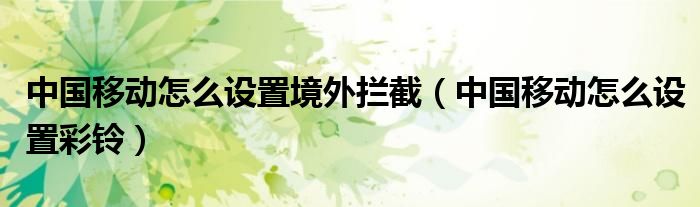 中國移動怎么設置境外攔截(中國移動怎么設置彩鈴)