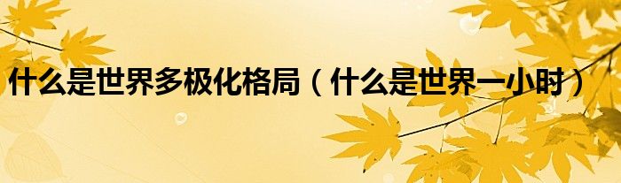 什么是世界多極化格局(什么是世界一小時)