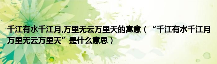 千江有水千江月,萬里無云萬里天的寓意(“千江有水千江月萬里無云萬里天”是什么意思)