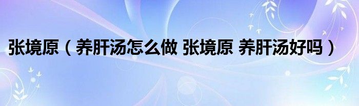 張境原(養肝湯怎么做 張境原 養肝湯好嗎)