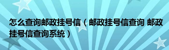 怎么查詢郵政掛號信(郵政掛號信查詢 郵政掛號信查詢系統)