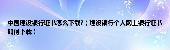 中國建設銀行證書怎么下載?(建設銀行個人網上銀行證書如何下載)
