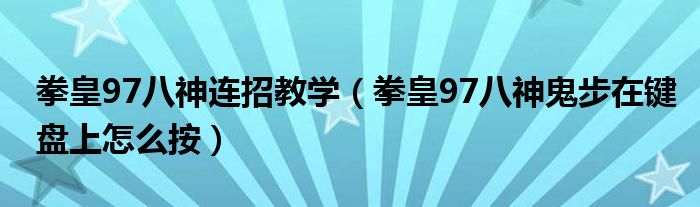 導讀 大家好,精選小編來為大家解答以上的問題。拳皇97八神連招教學,拳皇97八神鬼步在鍵盤上怎么按很多人還不知道,現在讓我們一起來看看吧!1