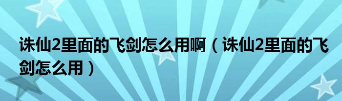 誅仙2里面的飛劍怎么用啊(誅仙2里面的飛劍怎么用)
