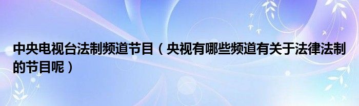 大家好,精選小編來為大家解答以上的問題。中央電視臺法制頻道節目,央視有哪些頻道有關于法律法制的節目呢很多人還不知道,現在讓我們一起來看看吧!