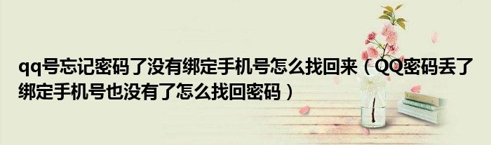qq號忘記密碼了沒有綁定手機號怎么找回來(QQ密碼丟了綁定手機號也沒有了怎么找回密碼)