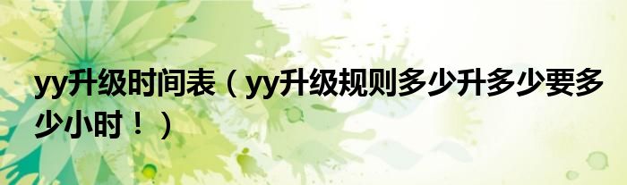 yy升級時間表(yy升級規則多少升多少要多少小時!)