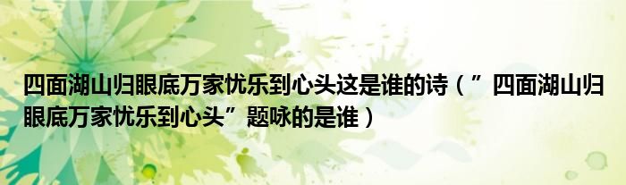 四面湖山歸眼底萬家憂樂到心頭這是誰的詩(”四面湖山歸眼底萬家憂樂到心頭”題詠的是誰)