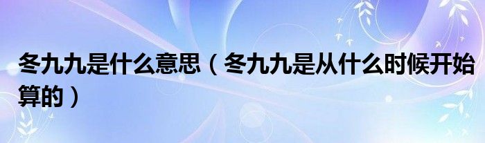 冬九九是什么意思(冬九九是從什么時候開始算的)