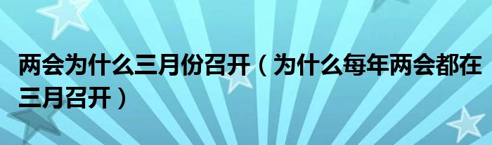 兩會為什么三月份召開(為什么每年兩會都在三月召開)