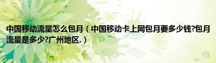 中國移動流量怎么包月(中國移動卡上網包月要多少錢?包月流量是多少?廣州地區.)