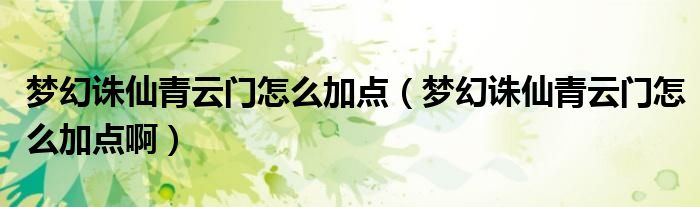 夢幻誅仙青云門怎么加點(夢幻誅仙青云門怎么加點啊)