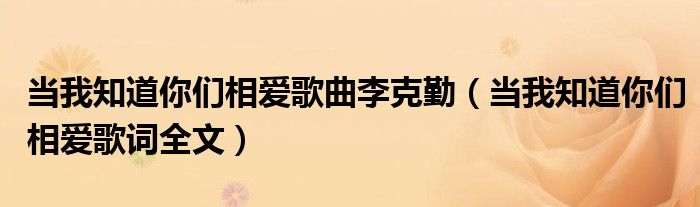 當我知道你們相愛歌曲李克勤(當我知道你們相愛歌詞全文)